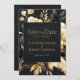 This gothic save the date card features dramatic black and ivory peonies with elegant antique gold accents on a deep charcoal background. Designed for couples who love dark romance and timeless vintage aesthetics, it creates a striking first impression for your wedding announcement. The refined gold typography and floral framing add a luxurious, old-world feel while keeping the layout clean and readable. Fully customizable text allows you to personalize names, dates, and wording with ease. Perfect for gothic, witchy, vintage, or moody wedding themes.