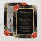 Elégante photo en noir et or pour célébrer l'invitation à la vie avec un cadre en or orné de roses rouges et de parties scintillant sur le devant et une photo à l'arrière.