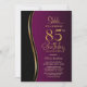 Invitation vos amis et les proches avec cette surprise moderne noir, or et rose 85ème anniversaire invitation fête. La zone de texte personnalisable de ce modèle d'invitation vous permet d'inclure sans effort tous les détails nécessaires à votre fête d'anniversaire, y compris la date, l'heure, le lieu et les informations RSVP. Une variété de types de papier et de styles d'angle sont disponibles pour vos invitations uniques, ainsi que l'option de téléchargement si vous préférez un format numérique.