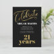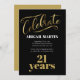 Élégante invitation à la fête du 21e anniversaire en noir, or et blanc.