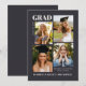 Celebrate your graduation with this black background Modern Graduation Announcement Card with Photos. Designed with a sleek, contemporary layout, this card features space for four photos, allowing you to share your favorite senior moments in one stylish design.