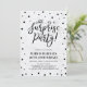 Célébrez votre jour spécial avec ce modèle d'invitation de fête moderne et élégant. Ce design présente des confettis noirs chic avec un fond marbré.
