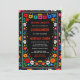 Invitation Black Mexican Fiesta Floral Gold Tiara Quinceañera
