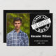 Une invitation moderne et simple à la remise des diplômes avec typographie blanche à l'intérieur d'un cercle comme un timbre, qui dit "classe de" et l'année de remise des diplômes, sur un arrière - plan noir. Ajoutez la photo, le nom, l'année et les informations de fête du diplômé au verso de la carte. Cette invitation est idéale pour une fête de fin d'études secondaires ou collégiales. D'autres couleurs arrière - plans sont également disponibles dans notre boutique.