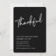 Faites une déclaration audacieuse avec cette Black Modern Thanksgiving Dinner Invitation. Doté d'un arrière - plan noir profond et d'un élégant script de calligraphie blanche, ce design minimaliste est parfait pour accueillir un élégant dîner Thanksgiving, une soirée d'action d'amitié chic ou un rassemblement d'automne moderne. Le design en noir et blanc, très contrasté, offre une touche sophistiquée à la papeterie traditionnelle de Thanksgiving, ce qui en fait l'endroit idéal pour les amateurs de fêtes contemporaines et élégantes. Personnalisez facilement vos détails de dîner et donnez le ton pour une nuit de gratitude et de convivialité. Invitation imprimée de 5" x 7" avec angles arrondis arrière - plan noir avec script blanc "Thankful" Style minimaliste moderne, entièrement personnalisable enveloppes assorties disponibles Parfait pour des dîners élégants, des fêtes d'Ami ou d'automne