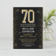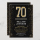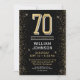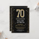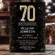 Cette fabuleuse invitation à la fête surprise de 70 ans pour hommes noirs et or, portant le numéro 70 en or avec des polices modernes et des côtés parties scintillant or, serait parfaite pour demander aux gens de se joindre à vous alors que vous fêtez l'homme à l'âge de 70 ans de votre vie. Traditionnel et classique, il est frais, moderne et contemporain. Pour voir vos invitations uniques, sélectionnez "Personnaliser ce modèle" et entrez vos informations. C'est super facile !