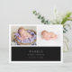 Announce the arrival of your bundle of joy with this black muted gray chic baby photo announcement card. The design features a clean white and black space to display your first baby's portraits, add names, birthday, and welcome message to share with friends and loved ones. Whether you’re welcoming a baby girl or baby boy, this design offers a beautiful way to introduce your newest miracle to the world.