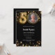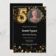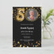 Une invitation photo moderne et design pour une fête du 50e anniversaire. Un arrière - plan noir classique, décoré de faux étoiles dorées. Personnalisez et ajoutez les détails de votre fête.