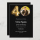 Une invitation photo moderne et minimaliste pour une fête de 40e anniversaire. Un arrière - plan noir classique. Personnalisez et ajoutez une photo et les détails de la fête.