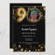 Une invitation photo moderne et design pour une fête du 90e anniversaire. Un arrière - plan noir classique, décoré d'étoiles dorées. Personnalisez et ajoutez les détails de votre fête.
