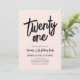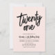 Célébrez votre jour spécial avec cette invitation simple et élégante pour un 21e anniversaire. Ce design présente une écriture chic au pinceau avec une mise en page épurée dans une combinaison de couleurs noir et rose poudré. Plus de designs disponibles dans ma boutique BaraBomDesign.