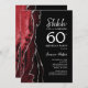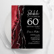 Gate noir rouge et blanc surprend 60e anniversaire invitation de fête. Design élégant et moderne avec aquarelle agate marbre arrière - plan, faux parties scintillant argent et typographie script. Carte invitation branchée parfaite pour une célébration anniversaire féminine élégante. Invitations Zazzle imprimées ou téléchargement instantané modèle imprimable numérique.