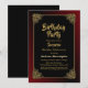 Invitation de fête d'anniversaire Black surprise avec un cadre doré orné avec une bordure extérieure à l'ombre rouge pour compléter le design créant une invitation dynamique pour votre occasion spéciale.