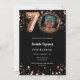 Une invitation photo moderne et design pour une fête de 70e anniversaire. Un arrière - plan noir classique, décoré d'étoiles dorées roses. Personnalisez et ajoutez les détails de votre fête.