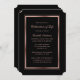Célébration minimaliste en or noir et rose de l'invitation à la vie avec détails de l'événement à l'intérieur d'un cadre en or rose sur le devant et une photo à l'arrière.