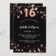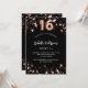 Un arrière - plan noir classique, décoré d'étoiles dorées roses. Personnalisez et ajoutez un nom et des détails du parti. Le numéro 16 est écrit avec un script de style ballon.