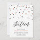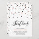 Célébrez votre journée spéciale avec cette simple invitation de fête du 16ème anniversaire de fille. Ce design présente un script de lettrage "Sixteen" avec des confettis en forme d'hexagone avec un combo en or noir et rose. D'autres designs sont disponibles dans ma boutique BaraBomDesign.