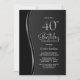 Invitation vos amis et les proches avec cette invitation moderne de fête de 40e anniversaire noir et argent. La zone de texte personnalisable de ce modèle d'invitation vous permet d'inclure sans effort tous les détails nécessaires à votre fête d'anniversaire, y compris la date, l'heure, le lieu et les informations RSVP. Une variété de types de papier et de styles d'angle sont disponibles pour vos invitations uniques, ainsi que l'option de téléchargement si vous préférez un format numérique.