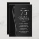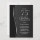 Invitation vos amis et les proches avec cette invitation moderne noir et argent 75ème anniversaire fête. La zone de texte personnalisable de ce modèle d'invitation vous permet d'inclure sans effort tous les détails nécessaires à votre fête d'anniversaire, y compris la date, l'heure, le lieu et les informations RSVP. Une variété de types de papier et de styles d'angle sont disponibles pour vos invitations uniques, ainsi que l'option de téléchargement si vous préférez un format numérique.