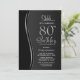 Invitation vos amis et les proches avec cette nouvelle invitation de fête de 80e anniversaire noir et argent surprise. La zone de texte personnalisable de ce modèle d'invitation vous permet d'inclure sans effort tous les détails nécessaires à votre fête d'anniversaire, y compris la date, l'heure, le lieu et les informations RSVP. Une variété de types de papier et de styles d'angle sont disponibles pour vos invitations uniques, ainsi que l'option de téléchargement si vous préférez un format numérique.