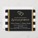 Belle cravate arc noir avec audacieuse rayures modernes noir et blanc et arrière - plan parties scintillant or avec l'écriture de parties scintillant d'or fantaisie invitation partie fiançailles. Cette invitation de fiançailles en noir et or est facilement customisée pour votre événement en ajoutant simplement vos détails dans le style et la couleur de police, et le libellé de votre choix.