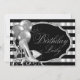 Invitation de fête d'anniversaire en noir et argent pour femmes avec élégantes chaussures à talon haute parties scintillant en argent et ballons en argent sur un bel arrière - plan à rayures argent et noir. Cette élégante invitation de fête d'anniversaire en noir et argent est facilement customisée pour votre événement en ajoutant simplement vos détails dans le style de police de votre choix. Il s'agit d'un dessin imprimé sans réelle parties scintillant, etc.