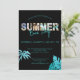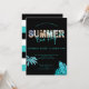 Célébrez la fin de l'été dans le style avec cette invitation chic, minimaliste, noire et turquoise beach party. La carte présente le mot été en typographie audacieuse remplie de photographies sur le thème de la plage sur un arrière - plan noir. Le palmier turquoise et les illustrations de verdure tropicale complètent le style minimaliste. Le dos de la carte est recouvert de rayures turquoises et de noir blanc. Ajoutez les détails de votre fête à l'invitation et envoyez-le à vos amis et votre famille.