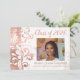 Joli faire-part de graduation photo avec arrière - plan blanc avec fantaisie tourbillons blancs et rouleaux. Joli, girly mais classe et style formel. Le noir et blanc à contraste élevé apporte une touche parfaite.