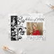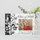 Joli faire-part de graduation photo avec arrière - plan blanc avec fantaisie tourbillons blancs et rouleaux. Joli, girly mais classe et style formel. Le noir et blanc à contraste élevé apporte une touche parfaite.
