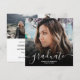 Class of 2026! A simple black and white graduation invitation with a large photo front and elegant script “graduate” lettering across the image. The clean square layout keeps the focus on the portrait, while the back features two photos and classic, easy-to-read event details. It’s a timeless option that works beautifully for both high school seniors and college graduates. All text and photos are fully editable to match your celebration.