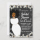 Cette élégante invitation à la douche nuptiale en noir et blanc présente une bordure de perles sur un arrière - plan noir avec une femme afro-américaine en robe blanche. Cette invitation donnera une première impression de style et d'élégance pour votre grand événement.