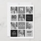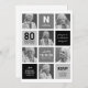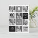Invitations contemporaines à la fête du 80e anniversaire avec un collage photo moderne, des carrés noirs et gris élégant, et un modèle texte élégant que vous pouvez personnaliser avec vos propres informations de célébration.