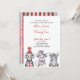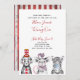 Ton bébé en tourne un ! Invitation vos invités spéciaux avec cette adorable invitation avec des animaux de cirque dessinés à la main en noir et blanc. Le nom du bébé, "Turning One" et la date sont en caractères de script en lettres rouges, et personnalisées dans un noir moderne chic sans serif. L'arrière de la carte présente une jolie texture rouge et blanche rayée de cirque. Copyright Invitations élégants, tous droits réservés.