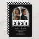 Arche à fractionnement noir et blanc Retro À damiers Graduation Party Invitation avec 2 photos. Parfait pour une fête de remise de diplômes combinée. Toutes les couleurs sont personnalisables à l'aide de l'outil de modification. à damiers motif à l'arrière peut être masqué ou supprimé. © Kimbellished, LLC