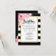 Invitation Black White Stripes Pink Peonies Anniversaire