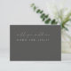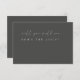 Veuillez noter que la couleur de la carte est gris foncé et non noir. Le design présente une police manuscrite et un design moderne minimaliste. Conçu pour coordonner avec pour la collection de Faire-part de mariage "SERENA". Pour modifier les détails, cliquez sur "Personnaliser ce modèle". Pour déplacer le texte ou modifier la taille, la police ou la couleur, cliquez sur "Modifier à l'aide de l'outil de conception". Voir le lien de collection sur cette page pour voir tous les éléments correspondants dans ce magnifique design ou voir la collection ici : https://bit.ly/3l2H3xB