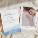 Ce mariage sauver la date dispose d'un ciel bleu aquarelle bleu poussiéreux plonger au fond avec des plaques d'or et une disposition moderne élégante. Ajoutez facilement votre propre photo sur le fond de votre blush avec votre site Web mariage pour une touche personnelle.