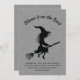 Une sorcière éffrayante volant sur un balai et le dire amusant, Blame it on the Boos, accentue cette Invitation Costume d'Halloween sur un arrière - plan de lin gris illustré, rendant cette invitation parfaite pour la fête d'Halloween Adulte.