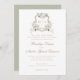 Invitation Blanc Floral Vert Sage Monogram Crest Mariage