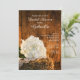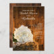 Invités Invitations à causal mais classe avant mariage fête de ferme honorant la mariée d'être avec la charmant White Hydrangea et Barn Wood Country Bridal Shower Invitation. Idéal pour une visite ou une idée pour un wedding shower à thème de ranch ou de grange, cet invitation personnalisé informel et élégant présente une photo florale pittoresque d'une fleur d'hydrangée blanche et mouchoir en lin dentelé vintage sur une balle de foin avec un arrière - plan en bois de grange brun patiné. Disponible sous forme d'invitation imprimée à l'envoi ou en téléchargement numérique pour un partage numériquement en ligne facile.