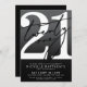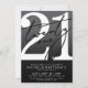Invitation de fête du 21e anniversaire Gris et Noir. Célébrez votre vingt et un ans de style grâce à ce design audacieux et chic. La moitié supérieure est composée d'un grand blanc "21" avec un script noir sassy écrit à la main "Cheers" superposé, se détachant contre un dégradé noir élégant sur un arrière - plan gris subtil pour un look noir et blanc. La partie inférieure est en noir massif avec des détails de partie dans une police blanche sans serif propre pour un effet moderne et frappant. Les couleurs des polices et de l'arrière - plan peuvent être customisées pour s'adapter à votre thème. Disponible sous forme d'invitation imprimée ou de téléchargement numérique, vous pouvez envoyer par courriel ou imprimer localement.