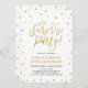 Célébrez votre jour spécial avec ce modèle d'invitation de fête surprise élégant. Ce design présente des confettis dorés chic et la calligraphie "chut... c'est une fête surprise !". Parfait pour une fête d'anniversaire de mariage de 50 ans dorée, mais vous pouvez personnaliser le texte pour n'importe quelle fête surprise. Les articles assortis sont disponibles dans ma boutique BaraBomDesign.