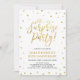 Célébrez votre jour spécial avec ce modèle d'invitation à une fête surprise élégante. Ce design présente des confettis texturés or chic et une calligraphie "chut... c'est une fête surprise!". Parfait pour une fête d'anniversaire de mariage de 50 ans en or, mais vous pouvez personnaliser le texte pour toute fête surprise. Les articles assortis sont disponibles dans ma boutique BaraBomDesign.