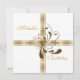 Invitation Anniversaire Blanc & Or Floral abstrait & garniture, écriture or marron Abstrait Fête Mince Longue. Anniversaire Anniversaire