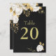 élégant personnalisable carte numéro de table blanc fleurs avec quelques feuilles d'or noir carte numéro de table