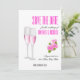 Un design féminin et beau combine un fond blanc élégant avec une typographie moderne incroyable et des fleurs roses ainsi que des verres à champagne. La carte Save The Date pour votre mariage est importante et vous méritez la meilleure. Ce design élégant et luxueux sera parfait.