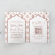 Éblouissez vos invités avec cela tout en un invitation plié mariage avec une arche élégante contre un arrière - plan damassé modèle avec QR Code pour RSVP en ligne. Ajoutez simplement les détails de votre événement sur ce modèle facile à utiliser pour en faire une invitation unique.