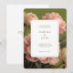 Moderne et tendance avec une atmosphère vintage classique. Cette belle faire-part de mariage est ornée d'un bouquet de roses voluptueux contre un arrière - plan chic vert olive à l'avant et blanc à l'arrière. L'ensemble de polices contemporaines dégage une élégance moderne et élégante. Personnalisez avec le site Web mariage et les détails RSVP à l'arrière.