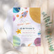 Fêtons l'anniversaire du garçon ! Cette invitation d'anniversaire à thème planète est parfaite pour tous les petits fous de l'espace ! L'Invitation présente différentes planètes aux couleurs vives, un navire-fusée, un OVNI et des étoiles. Le texte dit "3,2,1... Blast off !" avec le nom de votre enfant dans les grandes capitales futuristes. L'anniversaire de votre enfant apparaît dans l'étoile jaune. Customisez avec les détails de votre événement et ajoutez une petite note supplémentaire en bas dans une police manuscrite. Cette invitation mignonne et colorée est parfaite pour toute fête amusante. Customisez facilement pour une petite fille ou un look neutre. Reverse présente une image de galaxie bleu foncé avec des planètes en orbite. N'hésitez pas à m'envoyer un message pour toute question liée au design, toute customise d'aide ou toute commande personnalisée que vous avez en tête !