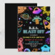 Invitation Blast Off Space Birthday Neon Outer Space Kids